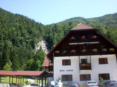Llegamos con el coche hasta el final del valle, subimos una cuesta para disfrutar de una cascada (slap en esloveno), bonita pero con poca agua, y decidimos darnos un paseo andando hasta la entrada del valle, siete kilómetros, y volver.